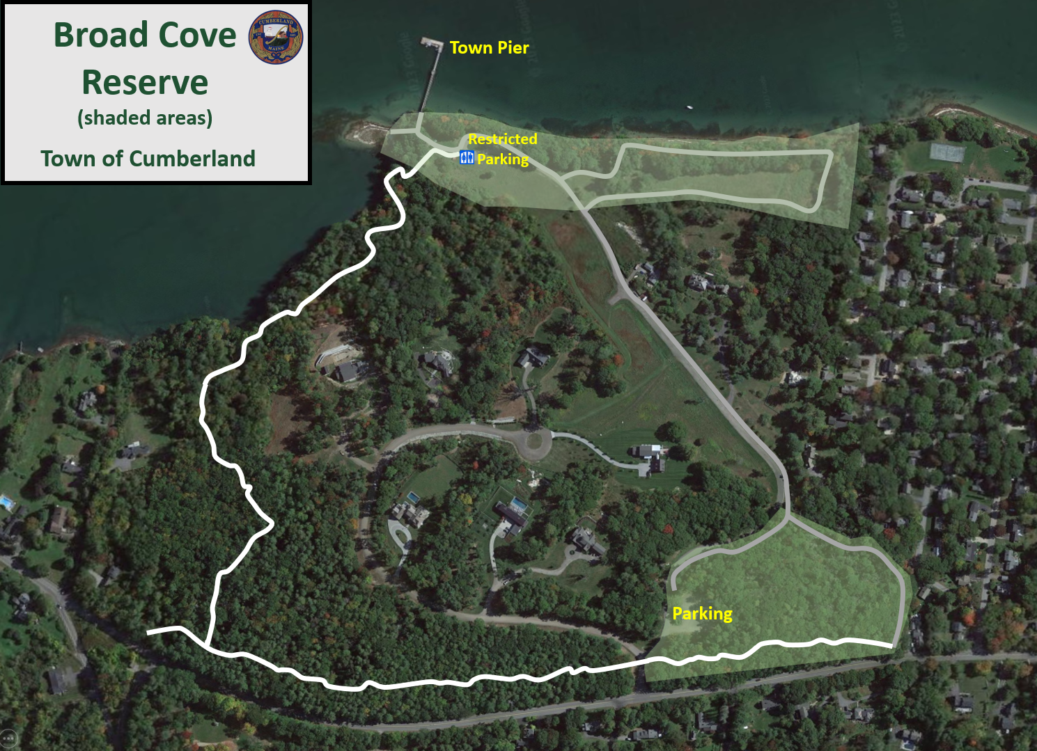 Parking is located at the entrance to the Broad Cove Reserve. Once you enter the reserve, you’ll drive down to the dock to drop off your gear and passengers. Then head back to the main parking lot. It’s a 10-minute walk from the parking lot back to the dock. Please note that the five parking spots next to the dock are for Cumberland residents only.