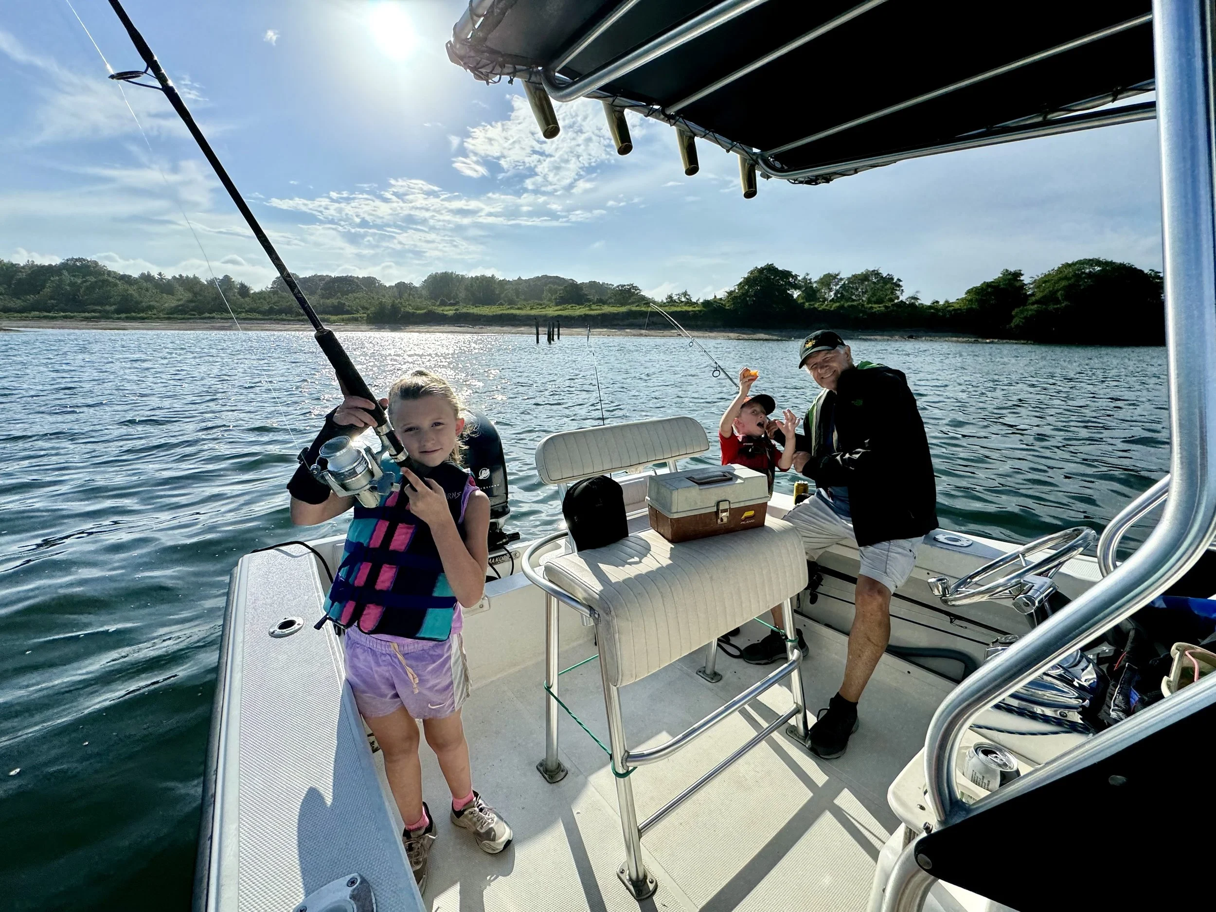 Safety Gear: a GPS/Fish Finder, VHF radio, eight adult and six kids PFDs, fire extinguisher, visual distress signals, horn, anchor, and a first-aid kit. Note: all boats have passed the Coast Guard’s Vessel Safety Inspection.